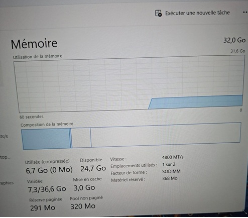 - Mémoire RAM : 32 Go DDR5 Vitesse : 4800 MHz