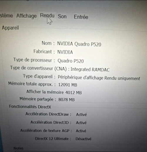 - Carte Graphique : NVIDIA Quadro P520 4Go + Intel UHD Graphics.
